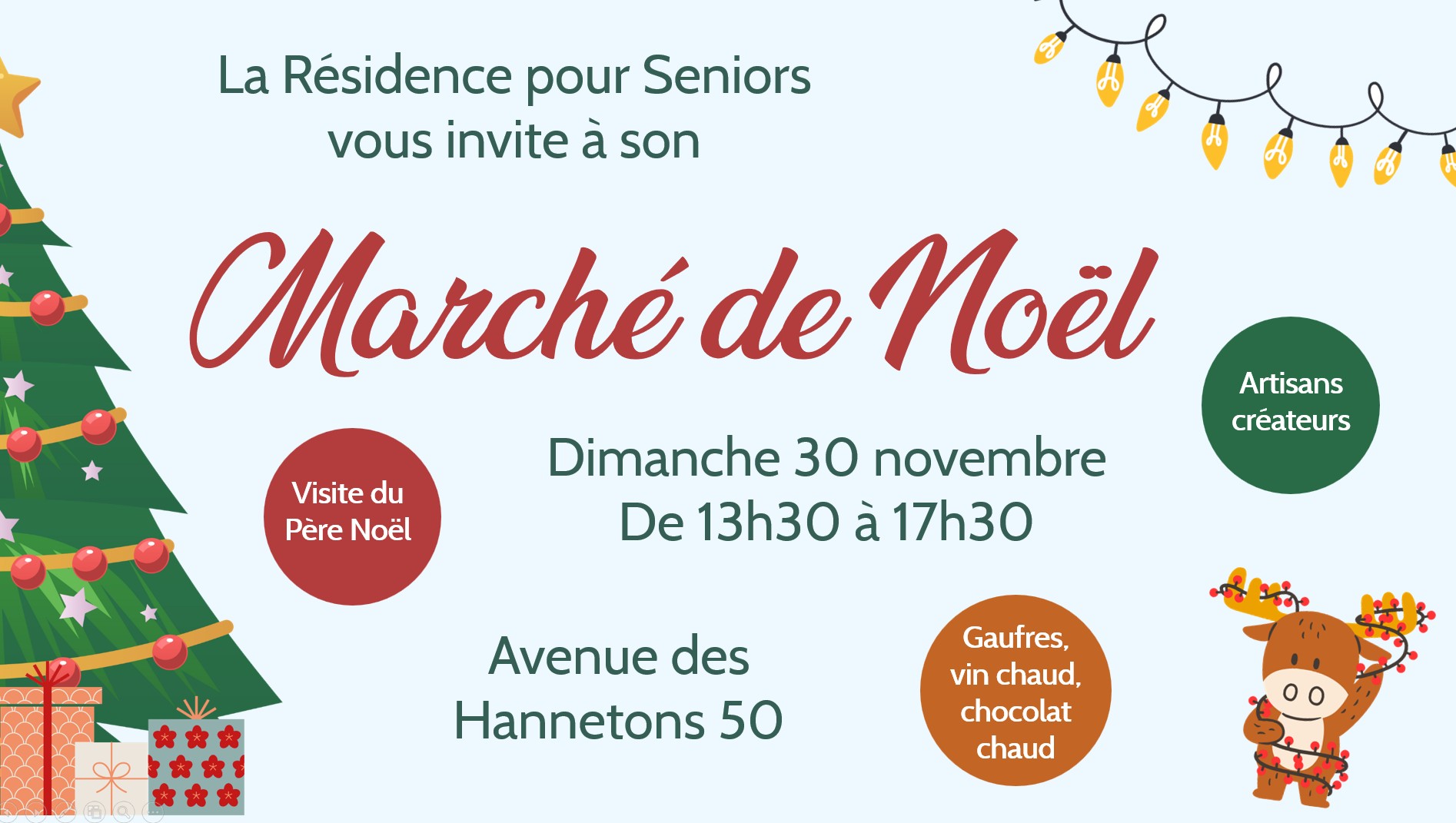 Le dimanche 30 novembre, de 13h30 à 17h30, la Résidence pour Seniors du CPAS vous ouvre chaleureusement ses portes pour son grand Marché de Noël.